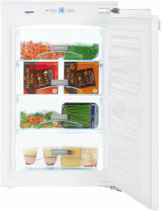 Морозильник Liebherr IG 1614 Comfort — компактная модель от известного производителя холодильного оборудования. Изделие устанавливается в нишу с кухонном гарнитуре, а на дверцу навешивается мебельный фасад, поэтому прибор можно установить в любое дизайнерское решение, так как его не будет видно для глаз пользователя. Внутри предусматривается четыре выдвижных ящика. Они изготовлены из прочного пластикам, устойчивого к механическим повреждениям. Прозрачный материал обеспечивает комфортный обзор содержимого Панель управления располагается с внутренней стороны, сверху. Она представлена информационным дисплеем, а также кнопками. Морозильник Либхер IG 161 оборудован полезной опцией суперзамораживания, которую удобно использовать при одновременном размещении большого количества свежих продуктов.