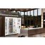 Встраиваемые холодильники монтируются в нишу или колонну. Передняя их часть закрывается декоративным мебельным фасадом и снаружи не отличается от дверцы обычного кухонного шкафа, так что их не нужно подбирать под интерьер помещения. Объем этих холодильников, как правило, несколько меньше, чем у отдельностоящих, так как при встраивании необходимо оставлять свободное пространство для вентиляции. Они отличаются меньшим уровнем шума, а также лучше держат холод и отличаются большей экономичностью из-за дополнительного слоя изоляции. Ассортимент этих холодильников не так велик, как у отдельно стоящих, установка более трудоемкая, а стоимость обычно несколько выше.