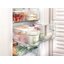 В холодильной камере для этого используются дополнительные навесные аксессуары — например, полки и балконы различной высоты на дверце. В самой камере стеклянные полки можно перемещать по высоте, а снизу к любой полке можно подвешивать дополнительные решетчатые держатели для бутылок или пластиковые выдвижные контейнеры для хранения яиц или мелких упаковок. Ящики для овощей и фруктов могут быть разделены на отдельные зоны с помощью встроенного ограничителя.