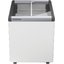Ларь снабжен верхней откидной крышкой, позволяющей поддерживать во внутренней камере низкую температуру. Крышка может быть как глухой, изготовленной из металла, как и весь корпус, так и прозрачной стеклянной. Подобная конструкция требует достаточно много свободного места для установки, однако может быть размещена в подсобном помещении, а не на виду.