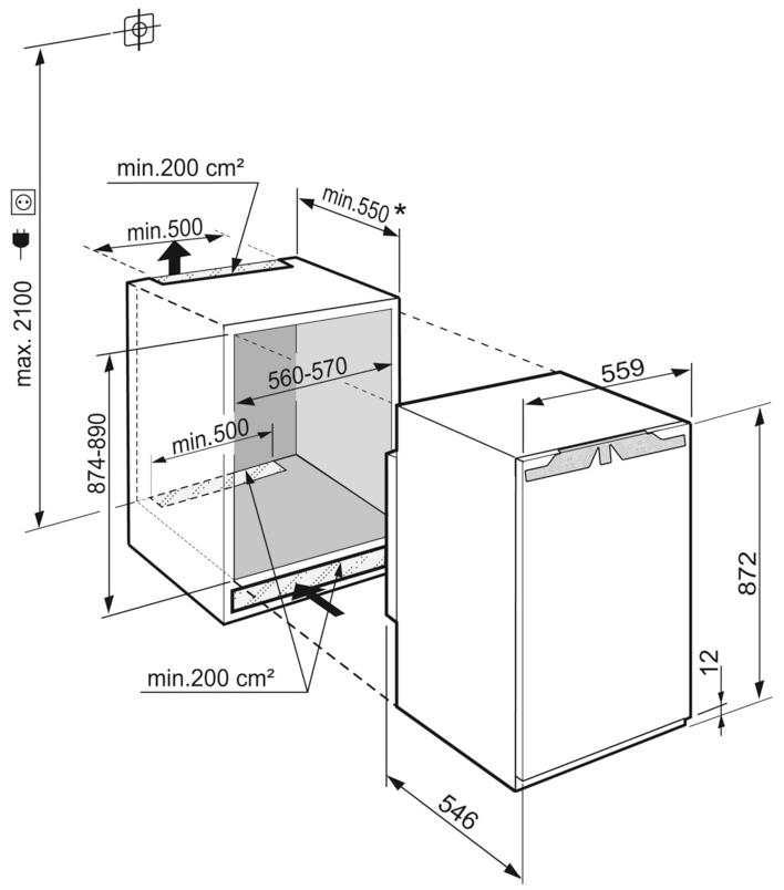 При встраивании холодильника в нишу, шкаф, колонну или другую кухонную мебель очень большое значение имеет правильная система вентиляции. Как известно, встроенные модели обычно устанавливаются не на пол, а на дно шкафа. В задней части большинства холодильников располагается конденсатор, отводящий тепло в окружающее пространство, так что для нормальной его работы требуется свободное место. Если холодильник придвинут близко к стене, он будет слишком сильно нагреваться, что может привести к постоянной работе компрессора, а в дальнейшем, возможно, и к выходу его из строя.