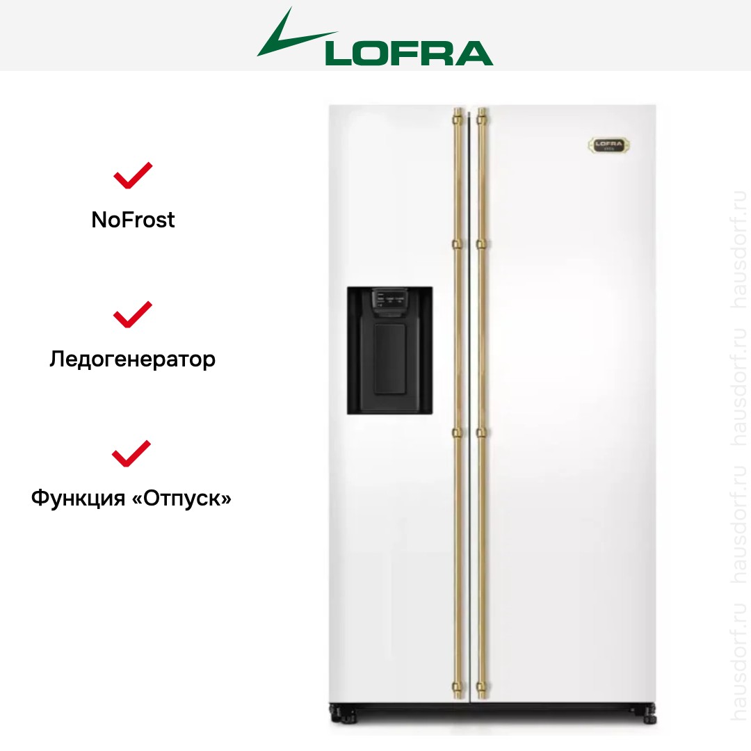 Данная модель — отдельностоящая, поэтому нужно тщательно подобрать место для ее размещения. Холодильник Side-by-Side с необычным расположением камер — сбоку друг от друга — позволяет увеличить объем продуктов для хранения. Такой вариант подходит обладателям просторной кухни, большим семьям, людям, которые запасают продукты и готовят впрок. Количество камер: 2.