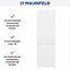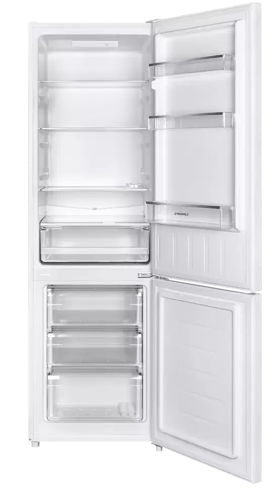 Maunfeld MFF176SFW — отдельно стоящий двухкамерный холодильник с нижней морозильной камерой. Модель высотой 176 см и шириной 54 см компактна и вместительна — ее можно установить как в просторной, так и в небольшой кухне. Корпус полностью изготовлен из металла и покрыт белой эмалью. Перенавешиваемая дверца и регулируемые по высоте ножки позволяют выбрать оптимальное место для установки. Общий объем холодильника составляет 263 литра, в том числе на морозильную камеру приходится 75 литров. Прибор относится к климатическому классу ST и может успешно работать при повышенной влажности воздуха и температуре окружающей среды от + 18 до + 38 градусов. Об экономичности прибора свидетельствует высокий класс энергоэффективности A+, а уровень шума при работе компрессора составляет всего 39 дБ. Электронная сенсорная панель управления поможет отрегулировать температуру в каждой камере отдельно.