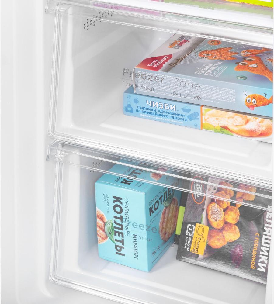 Вместительность увеличивается за счет наличия двух отсеков для фруктов и овощей. Они обеспечивают оптимальные условия для хранения свежих продуктов, сохраняя их полезные свойства и вкус на долгое время.