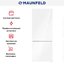 Холодильник Maunfeld MFF1857NFW — отдельно стоящая модель высотой 185 см и шириной 70 см с двумя камерами и двумя дверцами в корпусе белого цвета. Фасад изготовлен из ударопрочного стекла, боковые стороны — из металла. Дверца открывается слева направо, но может быть перенавешена на другую сторону. Климатический класс ST позволяет использовать эту модель при температуре окружающей среды от + 18 до + 38 градусов. Устройство отличается низким энергопотреблением класса A++ и пониженным уровнем шума 42 дБ благодаря инверторному компрессору. Общий полезный объем составляет 432 литра. Камера изнутри защищена специальным антибактериальным покрытием от неприятных запахов и болезнетворных микробов.