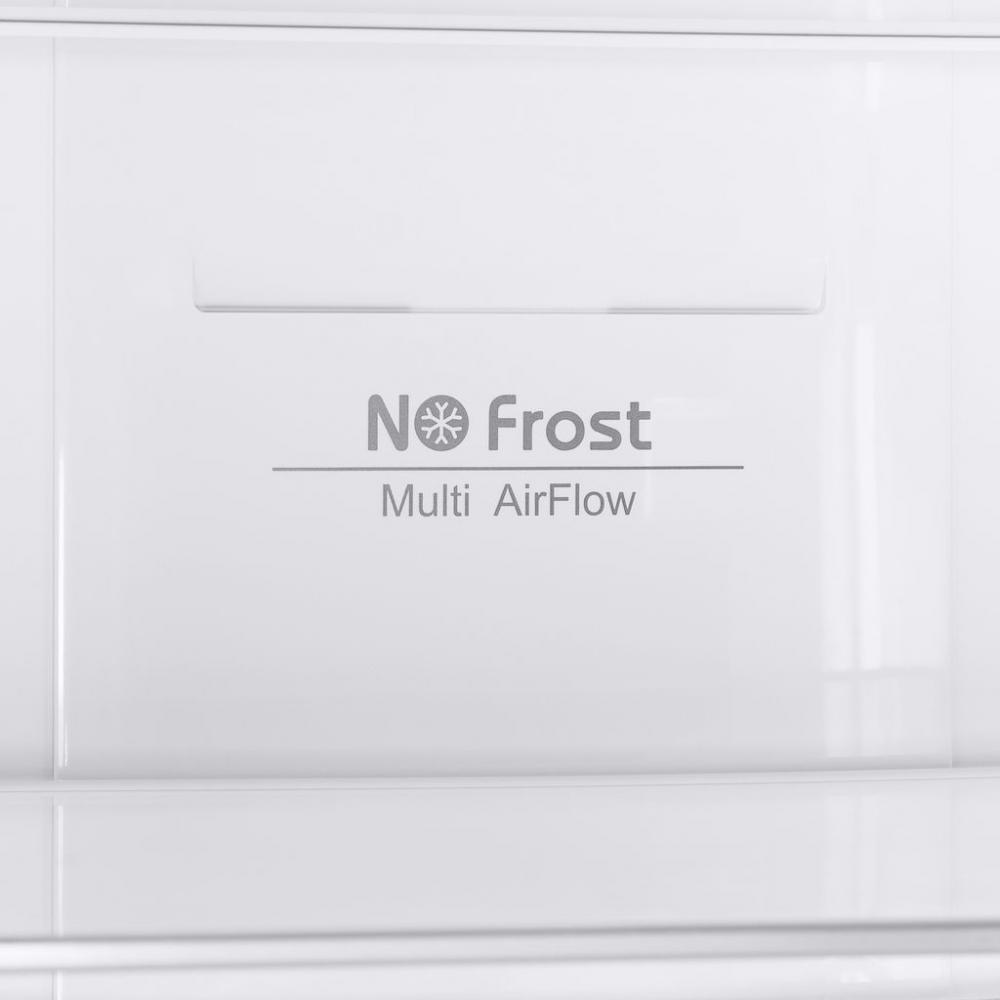 Образование льда предотвращает специальный вентилятор, который заставляет холодный воздух циркулировать по всему пространству морозильника. Лед при этом оседает не на стенках, а выводится за пределы камеры и остается на испарителе холодильника. Вентилятор работает попеременно с нагревателем, благодаря чему иней на испарителе оттаивает, а талая вода стекает в поддон, откуда испаряется естественным способом. Вопреки распространенному мнению, в морозильнике с системой No Frost продукты не заветриваются и не сохнут, а энергопотребление ненамного превышает этот показатель для обычных холодильников.