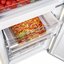 Электронная сенсорная панель управления с дисплеем позволяет раздельно регулировать температуру в камерах и выбирать режим быстрого замораживания. В холодильной камере имеются четыре стеклянные полки с металлической полосой: каждая из них способна выдерживать вес до 20 кг. Над большим ящиком для фруктов и овощей находится зона свежести с регулировкой влажности. В нижней морозильной камере продукты хранятся в трех прозрачных пластиковых ящиках. О неплотно закрытой дверце предупреждает звуковая и световая сигнализация. Если подача электроэнергии была ненадолго прервана, холодильник возобновляет работу с прежними настройками.
