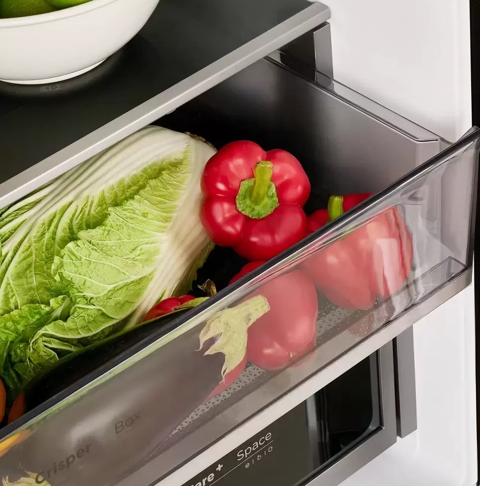 Ящики для овощей и фруктов можно найти в любой холодильной камере, какого размера ни был бы ваш холодильник — от большого устройства Side-by-Side до стандартной двухкамерной модели. В простейшем варианте они представляют собой обычные выдвижные ящики из пластика в нижней части камеры.