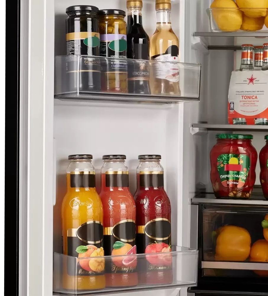 Специальная зона свежести предназначена для правильного и более длительного хранения овощей, фруктов, зелени. В ней поддерживается околонулевая температура, поэтому продукты не перемораживаются и не пересыхают.