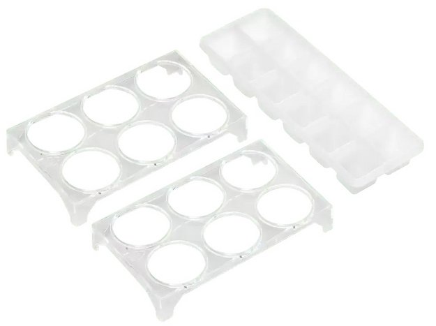 Лоток для приготовления кубиков льда имеется во всех морозильных камерах. В простейшем случае он представляет собой пластиковый контейнер, разделенный на квадратные ячейки и служащий для получения классических кубиков.