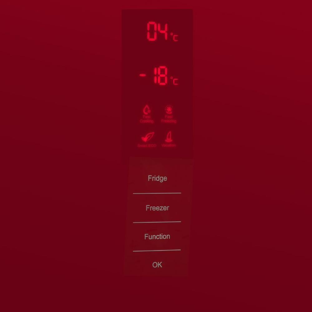 Электронное управление позволяет устанавливать параметры работы и активировать особые режимы при помощи сенсорных переключателей и дисплея. Температуру можно регулировать в каждой камере отдельно. Об открытой дверце и повышении температуры в морозильном отделении оповещает звуковая и световая сигнализация. Панель управления можно заблокировать от детей.