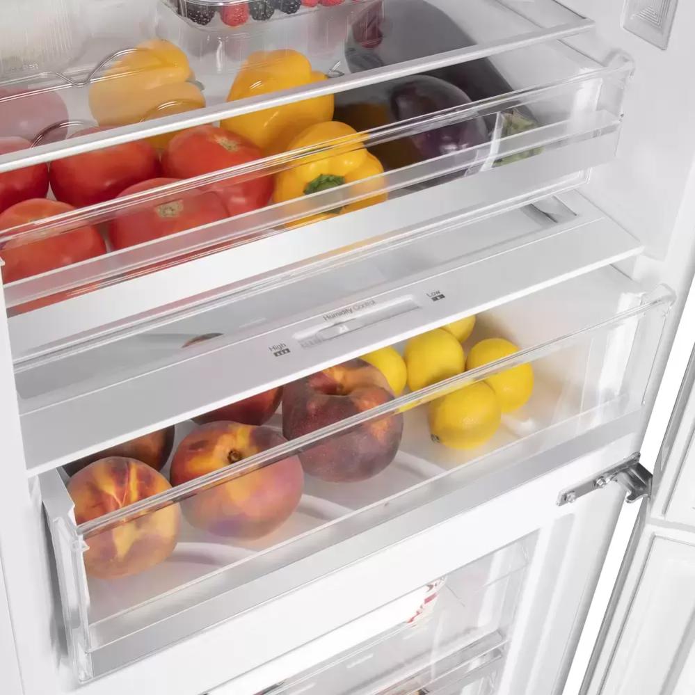 Вместительные контейнеры позволяют хранить достаточное количество овощей и фруктов. Для более длительного хранения и поддержания свежести овощей и фруктов разработаны специальные системы хранения. Среди них, например, зона свежести с увеличенной влажностью до 85% и температурой около 0 градусов. Это герметично закрывающийся ящик, часто на выдвижных роликах или направляющих, в котором имеется специальное задвижка, позволяющая регулировать влажность. Как известно, при более высокой влажности продукты с большим содержанием воды дольше остаются свежими.