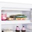 В холодильной камере продукты размещаются на одной регулируемой по высоте полке из закаленного стекла и одной нерегулируемой: под ними находится небольшой контейнер для овощей и фруктов. На дверце также имеются две полки, в том числе для высоких бутылок. Холодильник отличает уровень энергопотребления А+ и низкий уровень шума 40 дБ.