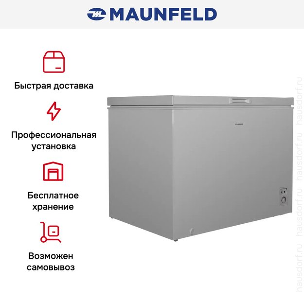 Maunfeld MFL300GR — отдельно стоящий морозильный ларь высотой 83 см и шириной 105 см. Общий объем этой вместительной модели составляет 300 литров: в него можно заложить на длительное хранение большой запас продуктов — заморозить урожай с садового участка, полуфабрикаты, мясо или рыбу. Корпус однокамерного ларя изготовлен из металла, а внутренняя часть — из пластика с антибактериальным покрытием, благодаря которому содержимое надежно защищено от плесени. Откидная крышка с удобной встроенной ручкой открывается широко и позволяет без труда разместить в камере любые упаковки и продукты, а для хранения мелких пакетов предусмотрены решетчатые навесные корзины. В отдельной емкости можно заморозить воду, чтобы получить кубики льда.