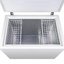 Внутренняя поверхность камеры выполнена из пластика с антибактериальным покрытием, гигиеничного и легкого в очистке. Крышка с удобной встроенной ручкой открывается на широкий угол, так что загрузка продуктов большого размера на составит труда. Для хранения мелких упаковок служат две съемные сетчатые корзины, которые навешиваются на края ларя. Имеется также специальная форма для получения кубиков льда.