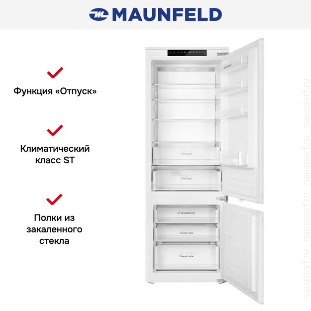 Встраиваемый холодильник Maunfeld MBF193NFW1 — замечательный выбор для всех, кто нуждается в надежном и современном приборе, чтобы обустроить кухню по последнему слову техники.