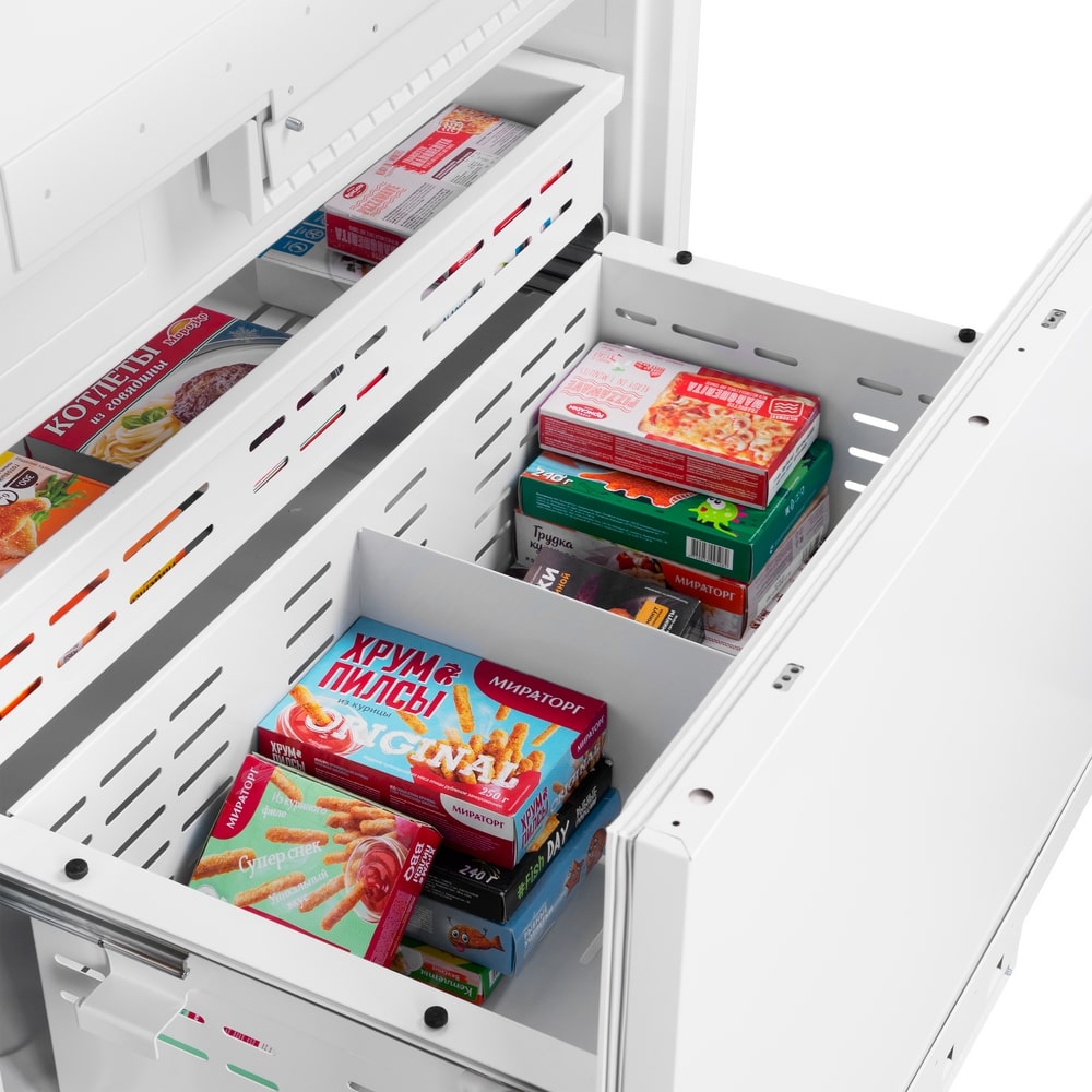Трехкамерные модели выпускаются в нескольких вариантах. В некоторых случаях в качестве третьей камеры поступает так называемая зона свежести — отделение, где поддерживается температура около 0 градусов. В другом варианте подобные модели имеют морозильную камеру, состоящую из двух выдвижных ящиков.