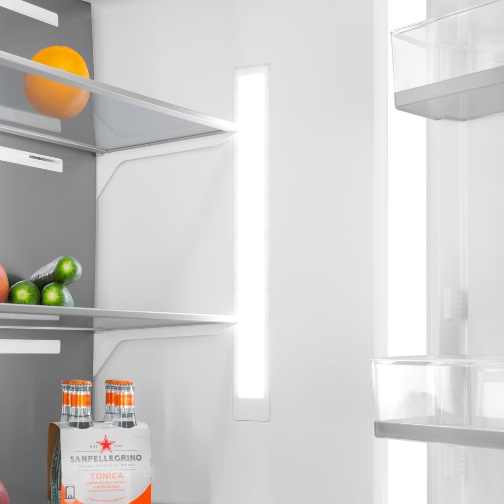 Внутреннее освещение холодильной камеры позволяет обеспечить хороший обзор содержимого и быстро найти необходимые продукты. Чем меньше времени будет открыта дверца холодильника, тем лучше будет поддерживаться в камере выбранная температура, следовательно, улучшится и качество хранения продуктов.