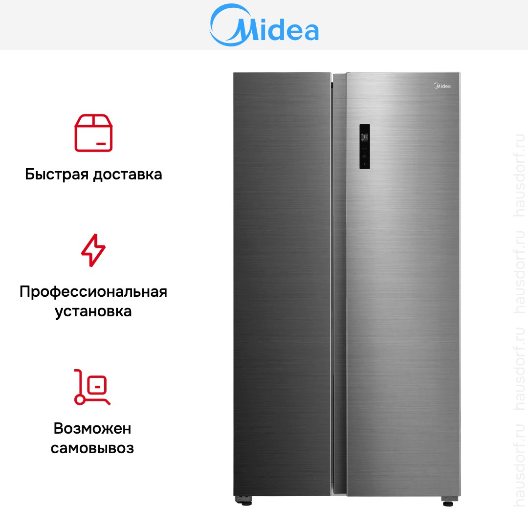Холодильник Midea MDRS710FGE46 — отдельно стоящий Side-by-Side с элегантным фасадом из нержавеющей стали и габаритами 176.5×89.7×70.6 см. Такой внешний вид гармонично впишется в современную кухню и задаст стильный тон интерьеру. Двухдверная конструкция Side-by-Side обеспечивает симметрию и удобство доступа к крупным продуктам без лишних наклонов. Корпус с антибактериальным покрытием поддерживает чистоту внутренних поверхностей и снижает риск появления неприятных запахов.