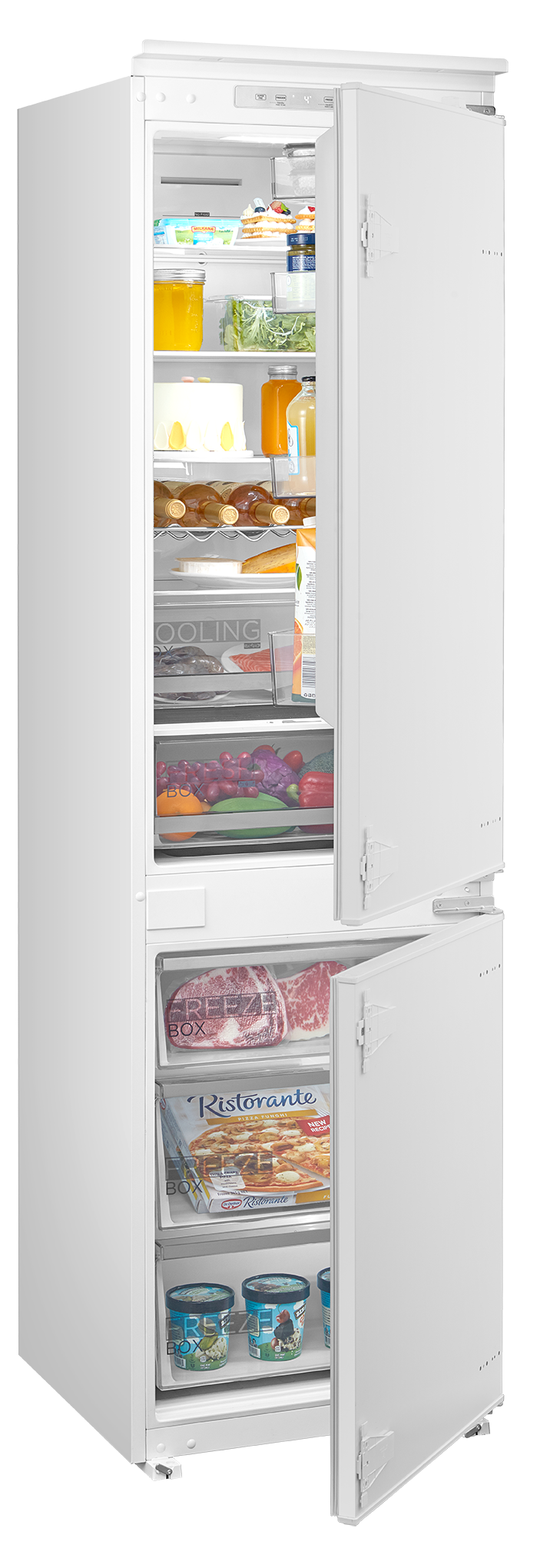 Встраиваемый прибор проще разместить в комнате, даже если общий метраж не такой уж большой. Вы можете спрятать его за декоративной панелью от мебельного фасада — советуем заранее определить нишу и заказывать панели исходя из типа крепления к двери. Благодаря внушительным размерам, в частности высоте, она подходит большим пространствам — просторной кухне, еврогостиной. Вы можете поменять направление открывания двери, так как упор переставляемый и ее можно перевесить на другую сторону. Такая функция открывает больше возможностей для установки. Холодильник с морозильником обладает всеми опциями, которые чаще всего ищут и выбирают покупатели. Стандартная конфигурация — универсальный вариант для любой квартиры. Количество камер: 2.