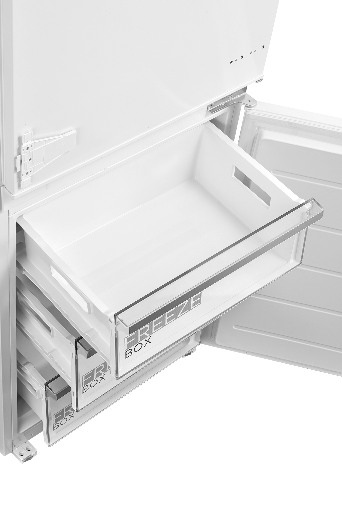 Трехкамерные модели выпускаются в нескольких вариантах. В некоторых случаях в качестве третьей камеры поступает так называемая зона свежести — отделение, где поддерживается температура около 0 градусов. В другом варианте подобные модели имеют морозильную камеру, состоящую из двух выдвижных ящиков.