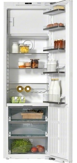 Встраиваемый холодильник с морозильником Miele K 37682 iDF — вместительное устройство объемом 284 литра и высотой 177 см. Оснащен зоной свежести PerfectFresh Pro объемом 27 литров с поддержанием оптимального уровня влажности для хранения продуктов без замораживания. Контейнеры на телескопических направляющих SelfClose в морозильнике легко извлекаются, если необходимо заморозить продукты большого объема. На полках в холодильном отделении находятся светодиодные светильники FlexiLight.