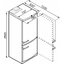Встраиваемые холодильники монтируются в нишу или колонну. Передняя их часть закрывается декоративным мебельным фасадом и снаружи не отличается от дверцы обычного кухонного шкафа, так что их не нужно подбирать под интерьер помещения. Объем этих холодильников, как правило, несколько меньше, чем у отдельностоящих, так как при встраивании необходимо оставлять свободное пространство для вентиляции. Они отличаются меньшим уровнем шума, а также лучше держат холод и отличаются большей экономичностью из-за дополнительного слоя изоляции. Ассортимент этих холодильников не так велик, как у отдельно стоящих, установка более трудоемкая, а стоимость обычно несколько выше.