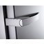 Внешняя ручка может не только послужить для открывания дверцы, но и стать интересной деталью интерьера. Особенно это касается ручек в ретро-стиле со встроенным толкателем и замком. Однако подобные элементы являются достаточно небезопасными, так как холодильник невозможно открыть изнутри. Обычные накладные дверные ручки устанавливаются на холодильник в вертикальном или горизонтальном положении. При этом особенной популярностью пользуются вертикальные ручки, идущие по всей длине камеры. Такая конструкция подойдет для людей любого роста.