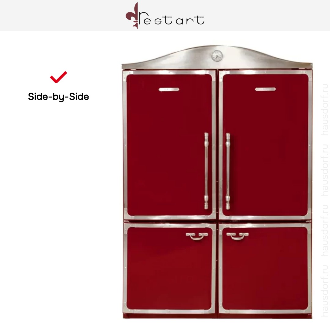 В числе подобных устройств имеются как отдельностоящие, так и встраиваемые модели: в любом случае они требуют много места для установки и могут быть размещены в просторном помещении. Преимуществом подобных устройств является прежде всего их вместительность, отличный обзор обеих камер, удобство использования, два контура охлаждения и возможность точной раздельной регулировки температуры. Кроме того, модели Side-by-Side преимущественно относятся к премиум-классу — имеют стильный внешний вид и большой набор дополнительных возможностей. Система размораживания подобных устройств — No Frost или капельная, — позволяет свести уход за прибором к минимуму.