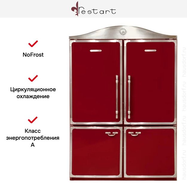 Высота таких холодильников обычно составляет от 175 до 220 см, а ширина — от 80 до 165 см. Как правило, подобные модели оснащены электронной системы управления с дисплеем, позволяющим быстро и наглядно изменять температуру и следить за состоянием прибора. В числе дополнительных функций можно выделить специальные зоны хранения продуктов, например, зону свежести или отделение для хранения вин, усовершенствованные системы циркуляции воздуха для равномерного охлаждения продуктов, возможность длительного сохранения холода при отключении электроэнергии.