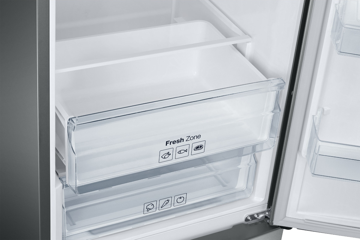 Вместительные контейнеры позволяют хранить достаточное количество овощей и фруктов. Для более длительного хранения и поддержания свежести овощей и фруктов разработаны специальные системы хранения. Среди них, например, зона свежести с увеличенной влажностью до 85% и температурой около 0 градусов. Это герметично закрывающийся ящик, часто на выдвижных роликах или направляющих, в котором имеется специальное задвижка, позволяющая регулировать влажность. Как известно, при более высокой влажности продукты с большим содержанием воды дольше остаются свежими.