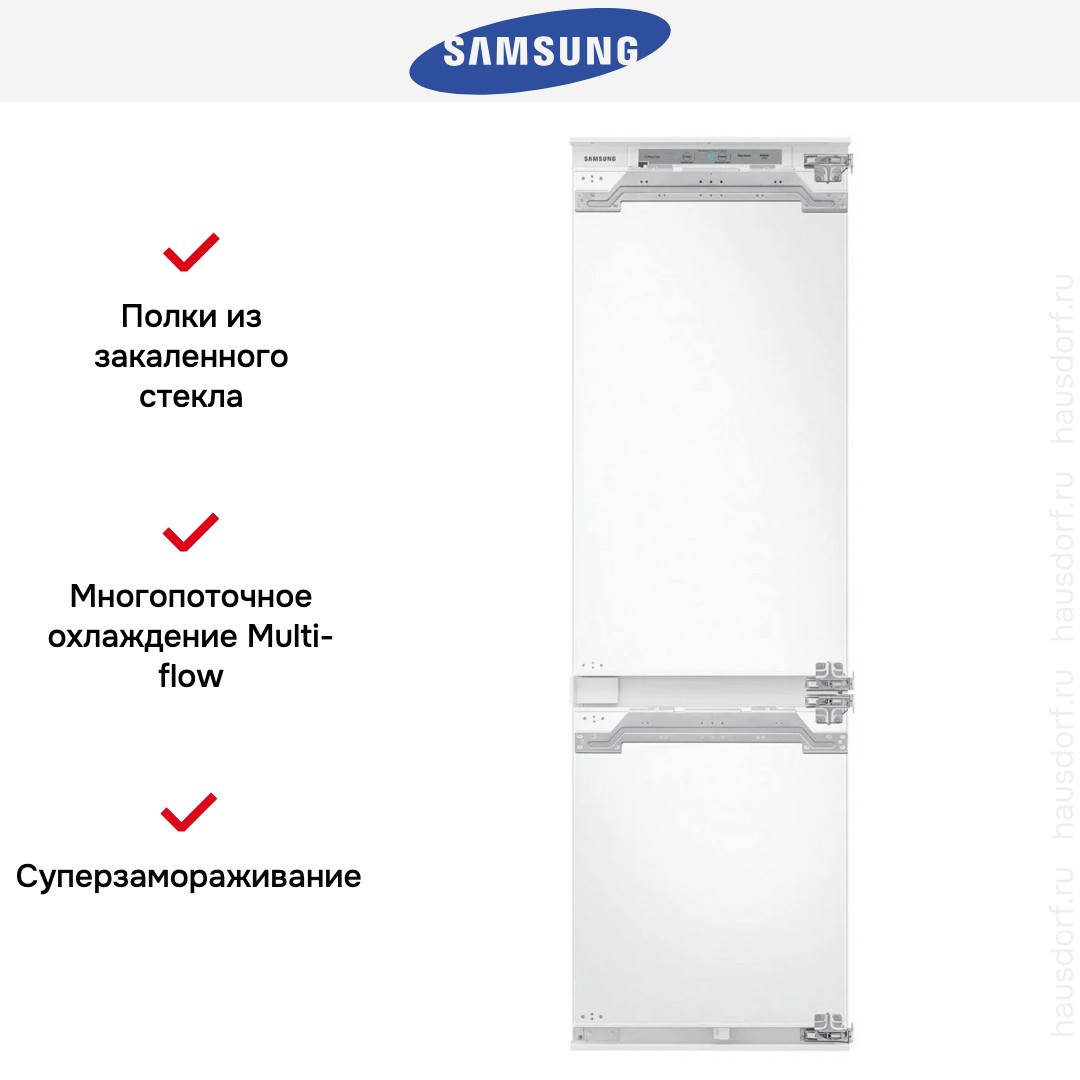 - No Frost в обеих камерах, Multi‑flow и инверторный компрессор обеспечивают равномерное и бесшумное охлаждение.