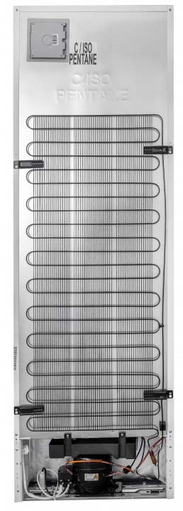 Более дешевый и распространенный материал изготовления корпуса холодильников — углеродистая сталь. Она менее устойчива к коррозии и ржавчине: для защиты от них корпус покрывается специальным лакокрасочным или полимерным покрытием. Полимерное покрытие может напыляться на поверхность в виде порошка: холодильники с таким порошковым напылением могут выглядеть так же, как и устройства из нержавеющей стали.