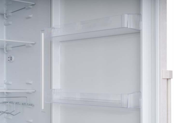 No Frost (Total No Frost, Frost Free): вентилятор обеспечивает циркуляцию охлажденного воздуха, благодаря чему лед не нарастает на стенке, а концентрируется только на скрытом внутри холодильника испарителе. Талая вода собирается в специальной емкости и испаряется. Такой холодильник не нужно размораживать – это экономит время и позволяет не останавливать прибор. Благодаря этим плюсам в современных моделях No Frost – самая распространенная система.