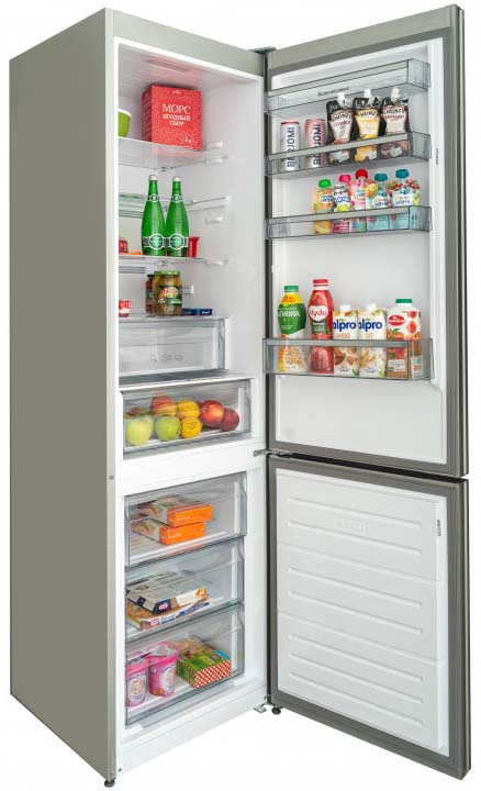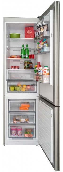 Внутреннее наполнение холодильной и морозильной камер включает многочисленные и разнообразные полки, ящики, контейнеры. Все они используются для более удобного и рационального размещения продуктов, которое обеспечивает хороший обзор содержимого холодильника и быстрый поиск.