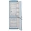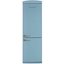 Двухкамерный холодильник нежного голубого цвета в ретро-стиле. Морозильник расположен внизу, имеет три вместительных ящика, где можно хранить большое количество заготовок. В холодильном отделении 8 стеклянных полок, в том числе на двери. Система No Frost позволяет забыть о регулярном размораживании.