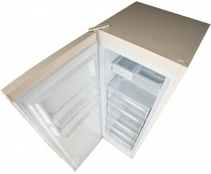 Бытовые морозильники внешним видом схожи с обычным холодильником, имеющим одну дверцу. Внутреннее наполнение подобной морозильной камеры составляют стеклянные полки и установленные на них пластиковые контейнеры с плотными крышками. Такая конструкция контейнеров служит для лучшего сохранения холода.