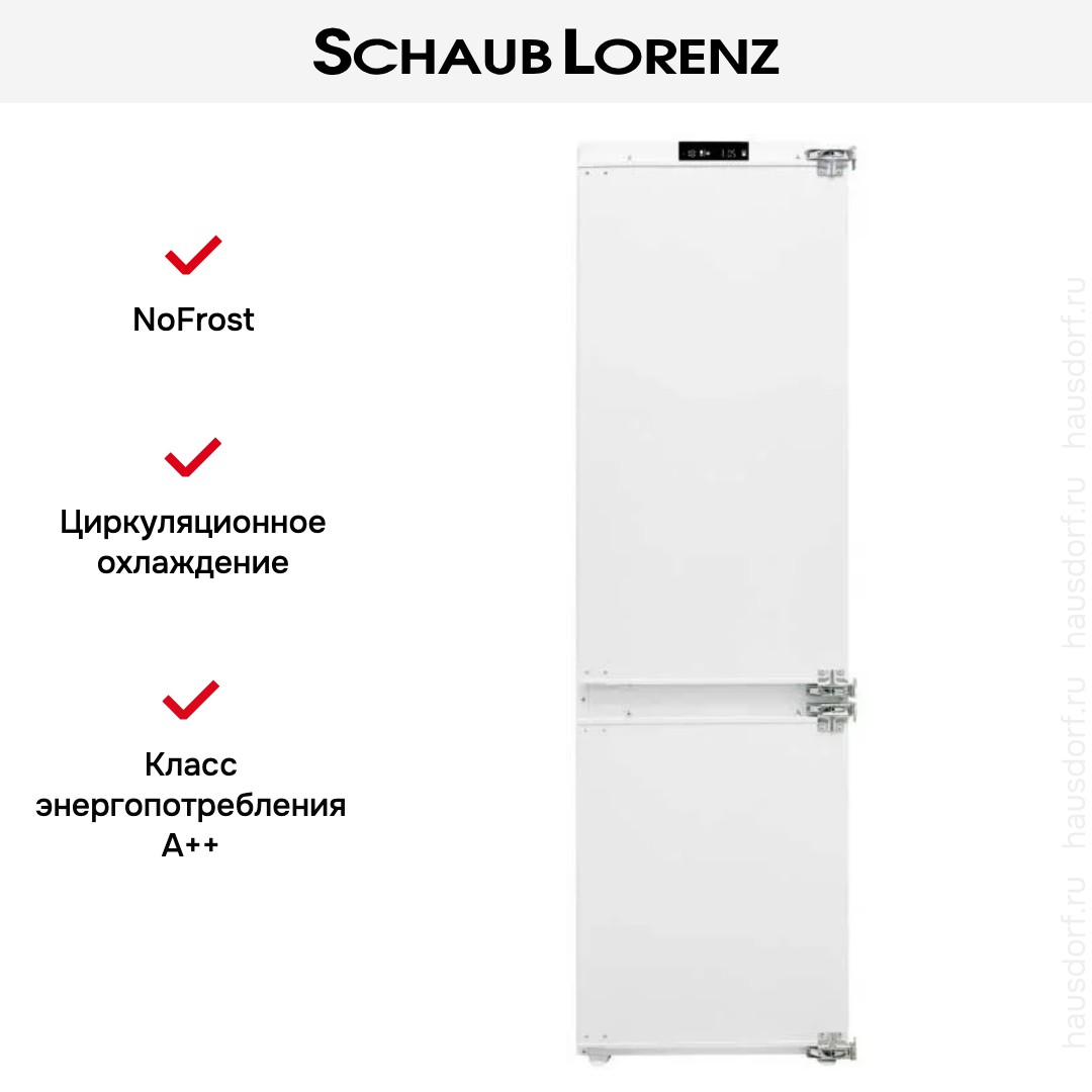 Встраиваемый холодильник Schaub Lorenz SLU-E235B7 создан для тех, кто ценит высокую эффективность и эстетичность техники. Передняя панель предназначена под навес фасада вашей кухни, поэтому прибор выглядит как единая мебельная композиция вместе с гарнитуром. Корпус компактно вписывается в нишу 177—177.8×56—57×56 см. Правая петля и жёсткий монтаж door on door дают надёжную фиксацию дверцы, но при необходимости дверцу можно перевесить, чтобы адаптировать расположение агрегата к планировке помещения.