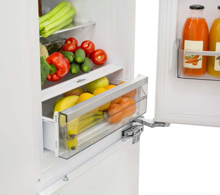 Ящики для продуктов изготавливаются либо целиком из прозрачного пластика, либо часто имеют переднюю прозрачную панель, которая обеспечивает лучший обзор. Полки в большинстве холодильников могут перемещаться по высоте, устанавливаются на специальных направляющих и без труда снимаются для очистки.