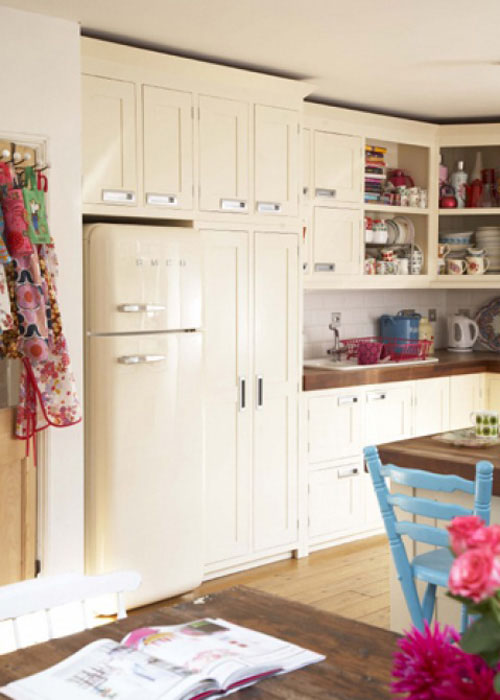 Цветные холодильники придают кухне особый шарм. Яркий прибор станет заметной деталью и центром кухни в ретро-стиле (особенно стоит обратить внимание на цветные холодильники производства «Смег»), а также индустриальном или лофт. Необычные пастельные оттенки отлично смотрятся в интерьерах в деревенском или средиземноморском стиле.