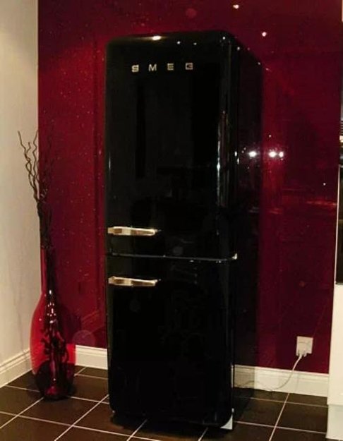 Последнее время достаточно широкое распространение получили холодильники черного цвета. Подобные устройства придают кухне особый стиль, однако не рекомендуется устанавливать их в небольшом помещении, особенно если фасад изготовлен не из стекла. Кроме того, черные холодильники требуют постоянного тщательного ухода, так как на них лучше заметны загрязнения.