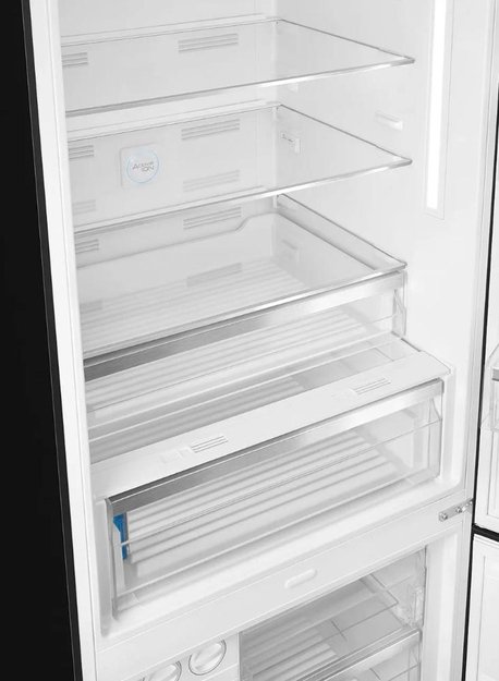 Smeg FA490RBL — отдельностоящий двухкамерный холодильник. Оснащен зоной сохранения свежести, где поддерживается оптимальная температура около 0°C, обеспечивающая более длительное хранение овощей, фруктов, мяса и рыбы. Управление электронное, внутри расположен LED-дисплей.