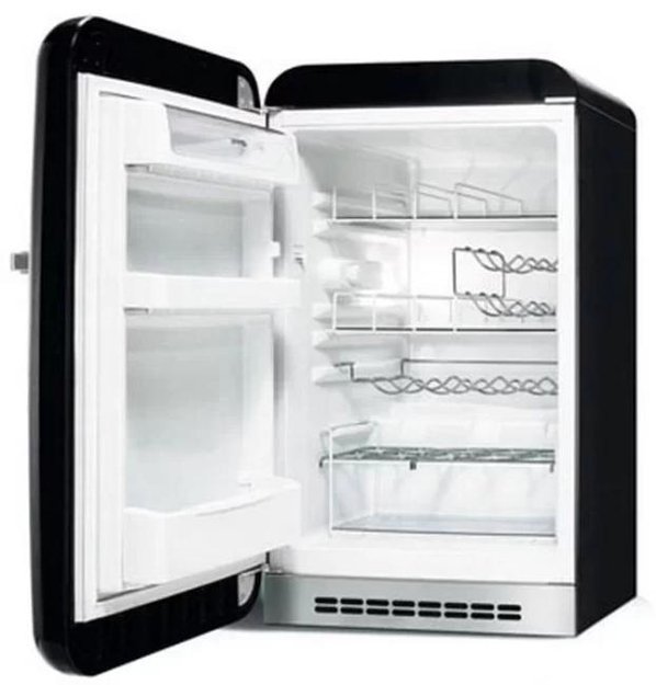 Как правило, объем подобного мини-холодильника не превышает 50-70 литров. Он имеет одну дверцу, за которой размещаются две или три полки в основной камере, полки на дверце для хранения бутылок и иногда небольшая верхняя морозильная камера с контейнером для льда. Мини-бар может встраиваться в тумбу стола или в шкаф за декоративным мебельным фасадом; в некоторых случаях подобное устройство устанавливается под столешницей и может иметь прозрачную дверцу.