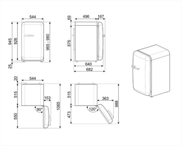 Мини-холодильники, которые могут быть установлены в тумбу или под столешницу, отличаются несколько меньшей шириной от 50 см. Такую же небольшую ширину имеют встраиваемые модели, что связано со способом их установки.