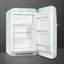 Данная модель входит в самую популярную линейку Smeg — «Стиль 50-х гг». Вы можете собрать полный комплект техники, которая имеет ретро-дизайн, но современный функционал и необходимое для вашей кухни наполнение. Холодильник выполнен в пастельной цветовой гамме — нежно-зеленый подойдет интерьеру в светлых оттенках, деревянной мебели или декору в цвете нержавеющей стали.