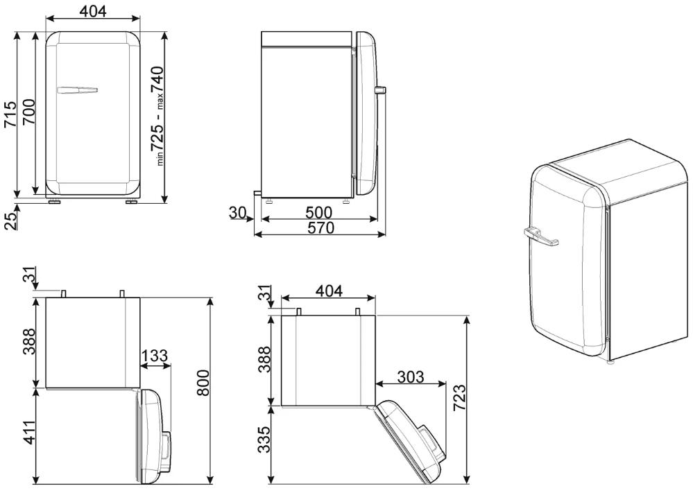 Диапазон размеров стандартных холодильников любой ширины и высоты может составить от 55 до 65-70 см. Иногда модели большей глубины, порядка 70 см, приобретаются для того чтобы скомпенсировать более строгое ограничение по ширине и увеличить вместимость. У мини-холодильников, которые размещаются под столешницей или в тумбе, глубина также меньше стандартной: она может составить минимум 48-50 см. Иногда в таких холодильниках часть глубины «съедает» расположенный в камере компрессор.