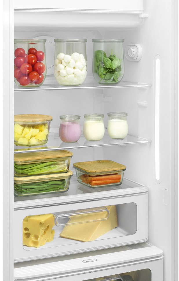 Внутреннее освещение холодильной камеры позволяет обеспечить хороший обзор содержимого и быстро найти необходимые продукты. Чем меньше времени будет открыта дверца холодильника, тем лучше будет поддерживаться в камере выбранная температура, следовательно, улучшится и качество хранения продуктов.