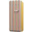 Отдельностоящий однокамерный холодильник с морозильником выполненный в ретро-стиле 50-х годов с оригинальным принтом "хиппи" в виде разноцветны полосок создаст праздничную атмосферу на Вашей кухне. Задать нужный температурный режим, а также все прочие характеристики работы холодильника можно при помощи простой электромеханической системы управления.