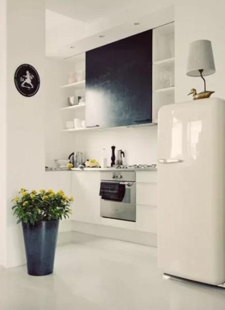 Цветные холодильники придают кухне особый шарм. Яркий прибор станет заметной деталью и центром кухни в ретро-стиле (особенно стоит обратить внимание на цветные холодильники производства «Смег»), а также индустриальном или лофт. Необычные пастельные оттенки отлично смотрятся в интерьерах в деревенском или средиземноморском стиле.