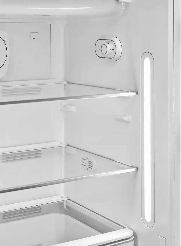 Отдельностоящий холодильник Smeg FAB28RBL5 выполнен в черном цвете. Стиль 50-х годов и скругленный, выпуклый корпус дополняют образ. Модель в таком оформлении сможет стать прекрасным дополнением современного дизайна. LED-подсветка экономична в потреблении электроэнергии, устойчива к низким температурам и экологична. Стеклянные полки холодильной камеры регулируются. Есть отдельный ящик со стеклянной крышкой, для хранения овощей и фруктов. Зона сохранения свежести продлит срок годности скоропортящимся продуктам питания.